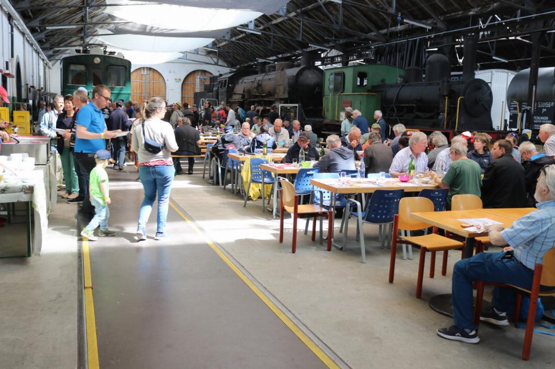Zeitgleich mit dem Hafenfest hat auch die Eisenbahn-Erlebniswelt in Romanshorn ihre Tore geöffnet – und sämtliche Mitarbeiterinnen und Mitarbeiter hatten vor allem am Sonntag alle Hände voll zu tun, waren doch gleich mehrere Extrazüge von SBB Historic, DVZO und Club Bm22-70 angesagt und vor Ort. Wohl mehrere Hundert Gäste besuchten das Locorama und kamen daselbst in den Genuss von Museumsfahrzeugen, Gartenbahn, Loksimulator und passender Verpflegung. Die Erlebniswelt hat nun jeden Sonntag von Mai bis Oktober geöffnet.