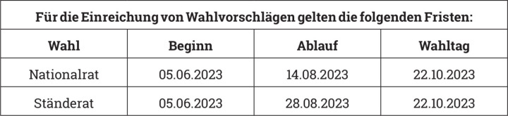 Die National- und Ständeratswahlen finden am 22. Oktober 2023 statt.