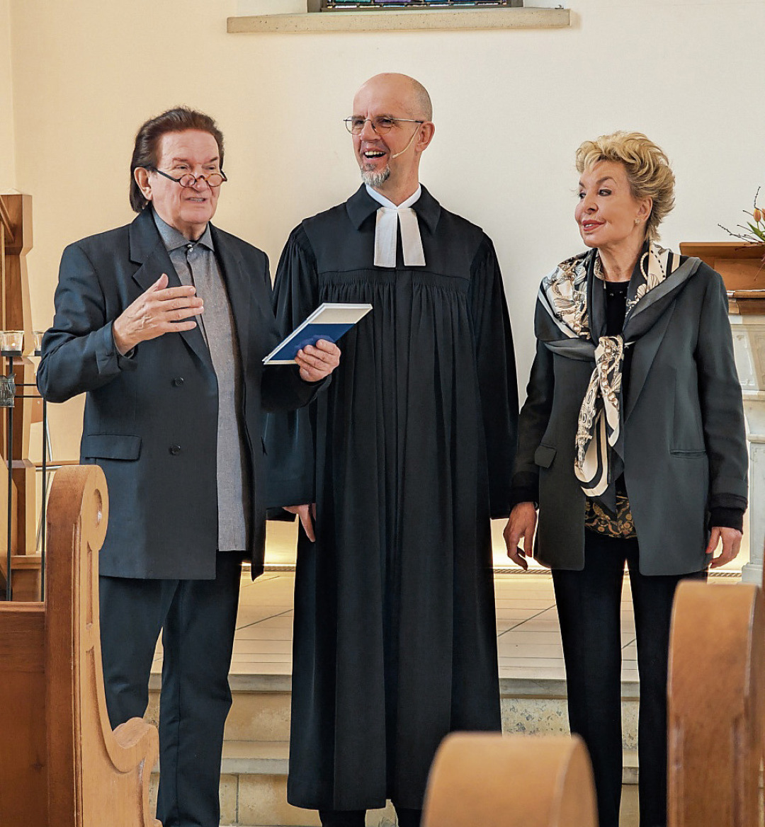 Professor Hermann Sailer (im Bild links) mit Gattin Erika, Gründer der Stiftung, die sich um die Behandlung von Lippen-Kiefer-Gaumenspalten in Indien und anderen Ländern mit hoher Armut sorgt, waren als Gäste gekommen und erzählten von ihrer Arbeit. Man konnte ihnen die Begeisterung für die Sache abspüren und der Funke sprang über. Dank der herzlichen und unkomplizierten Art von Ehepaar Sailer wie der offenen Sympathie seitens der Gemeinden war man am anschliessenden Suppenplausch mit Anteilnahme bei der Sache, bei den Kindern Südwestindiens, denen ganzheitlich, chirurgisch wie auch im Blick auf die schulische Bildung während der langen Spitalaufenthalte geholfen wird. Aber man war auch persönlich beieinander und genoss die Gemeinschaft.