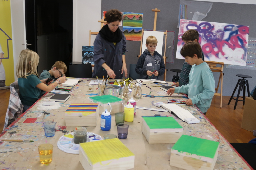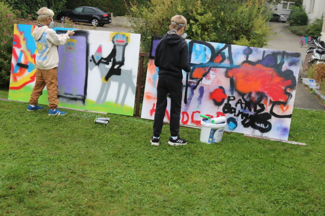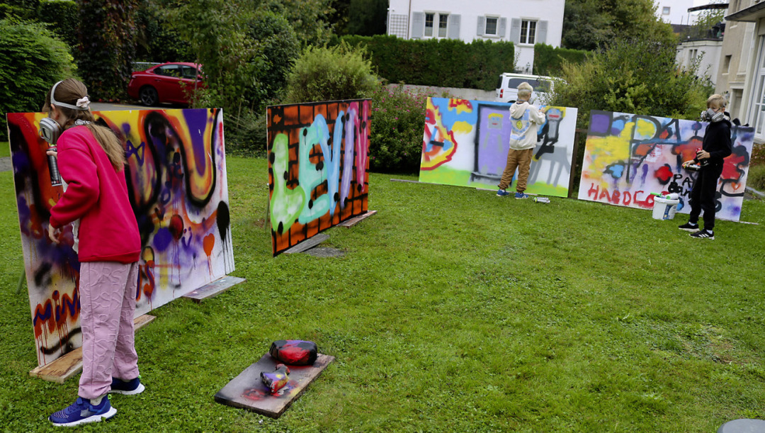 Während die einen Kinder mit Holzkiste, Papier und Farben eine eigene Zauberausrüstung kreierten, waren andere mit Stoffen und Farben unter dem Titel «Farbenfreude» kreativ unterwegs. Ideen und Techniken waren beim Graffiti-Workshop gefragt genauso wie beim Kurs «RoboTalent».